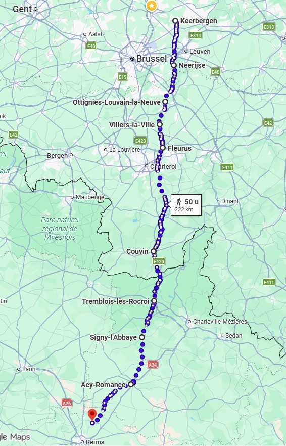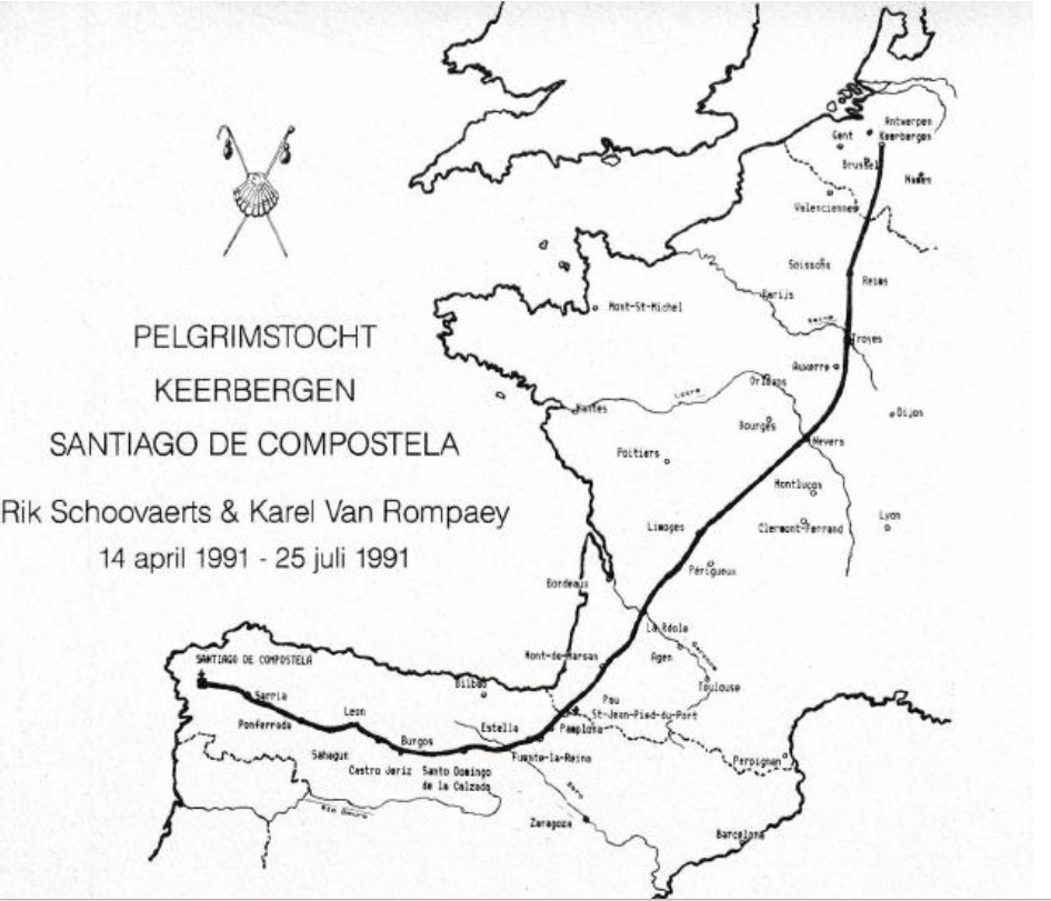 De reisweg begon in Keerbergen op 14 april 1991 om te eindigen in Santiago de Compostela op 22 juli 1991.